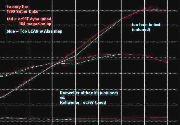 It's fine for a magazine test bike, but not yours. Wheelsmith has been tuning efi KTMs since the first 990's came out - and tuning KTM twins for years in fact, the 950 jetting kit that Factory Pro / Wheelsmith developed is the best performing 950 jet kit available to this very day. Wheelsmith (Factory Pro's R&D division) is available to tune your trackday SD- Local Tuning 415 491 5920 m-f, 9-4 ..................................... 1290 SD feedback after tuning and test riding