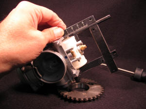 Easier to use than vernier calipers on carbs. The vertical legs adjust in width and the
